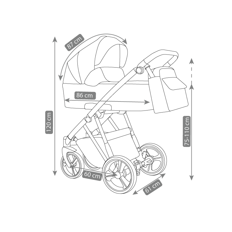 Dimensiune carucior: 61 x 60 x 120 cm (L x l x H);