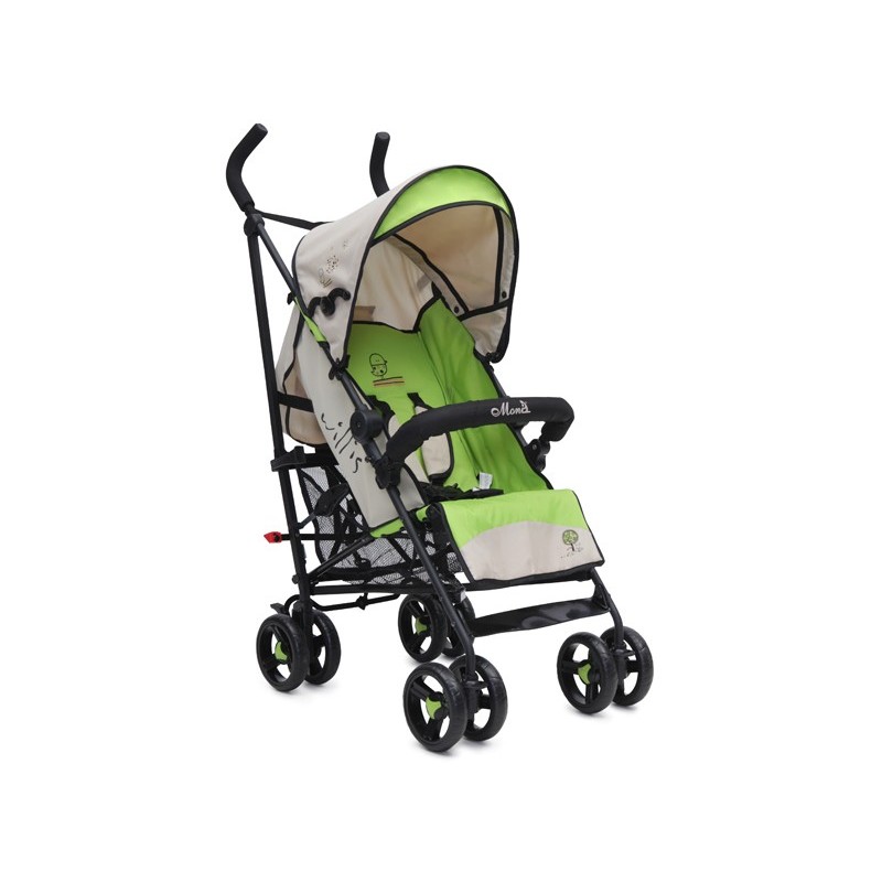 Un Carucior copii sport Moni Willis Verde care este confectionat din materiale de calitate superioara, usor de pliat. Este prevazut cu un cadru metalic, roti pivotante si frana pe rotile din spate. Pentru a putea depozita cumparaturile sau scutecele, acest carucior sport copii este prevazut cu suport pentru accesorii si un buzunar in spatele copertinei.