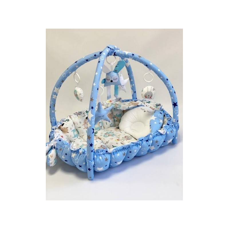 Babynest-ul 2 in 1 Mykids iese in evidenta prin multifunctionalitatea si designul acestuia, fiind in acelasi timp un cuib pentru bebelusi cat si un covoras de activitati.