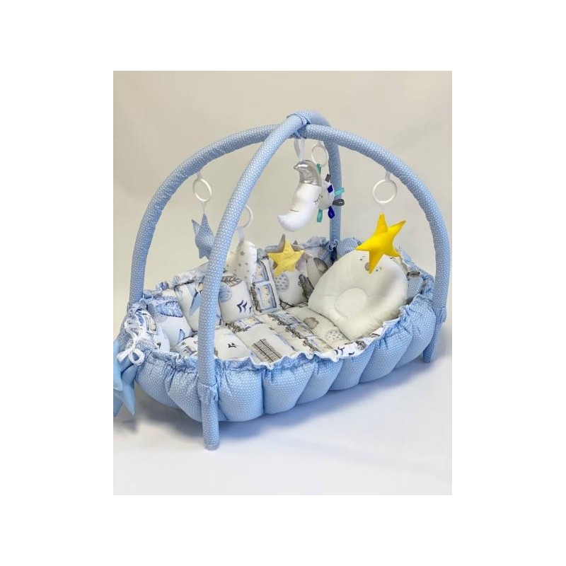 Babynest-ul 2 in 1 Mykids iese in evidenta prin multifunctionalitatea si designul acestuia, fiind in acelasi timp un cuib pentru bebelusi cat si un covoras de activitati.