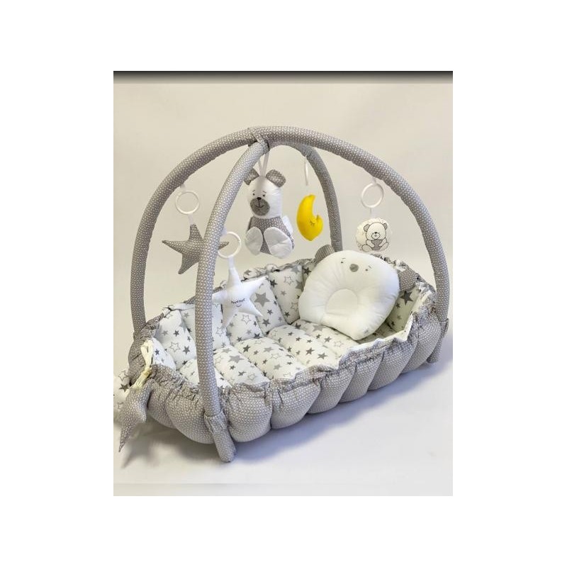 Babynest-ul 2 in 1 Mykids iese in evidenta prin multifunctionalitatea si designul acestuia, fiind in acelasi timp un cuib pentru bebelusi cat si un covoras de activitati.