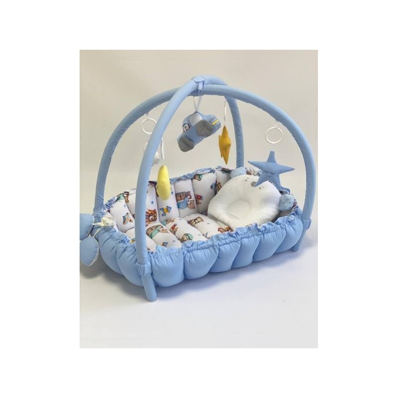 Babynest-ul 2 in 1 Mykids iese in evidenta prin multifunctionalitatea si designul acestuia, fiind in acelasi timp un cuib pentru bebelusi cat si un covoras de activitati.