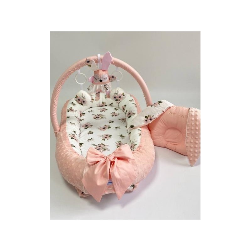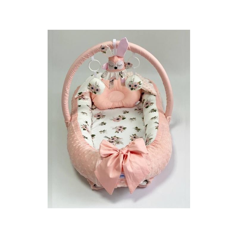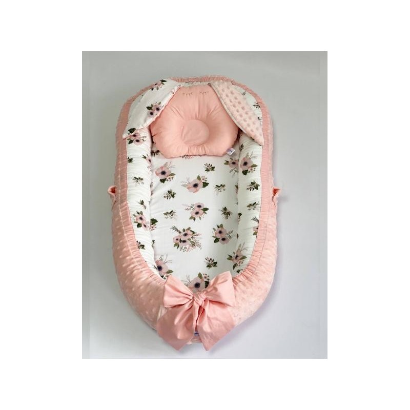 Pentru a ne adapta cerintelor mamicilor folosim doar materiale de calitate. Babynest-ul este umplut cu bumbac 100% natural care indeplineste toate standardele europene de si o tesatura din material moale si pufos Minky Dot.
