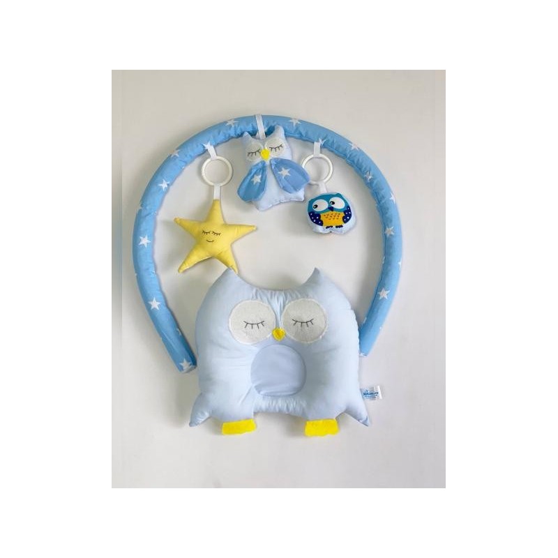 Cuibul include o arcada pe care sunt asezate jucariile astfel copilul va fi foarte interesat sa le prinda si o pernita cu un design unic.