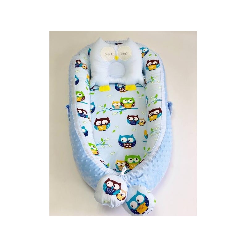Pentru a ne adapta cerintelor mamicilor folosim doar materiale de calitate. Babynest-ul este umplut cu bumbac 100% natural care indeplineste toate standardele europene de si o tesatura din material moale si pufos Minky Dot.