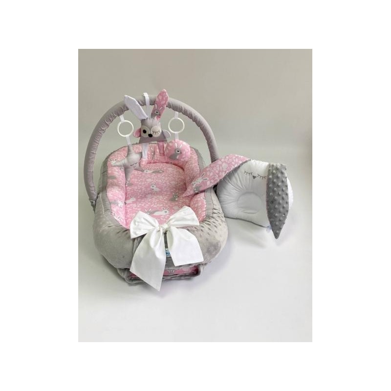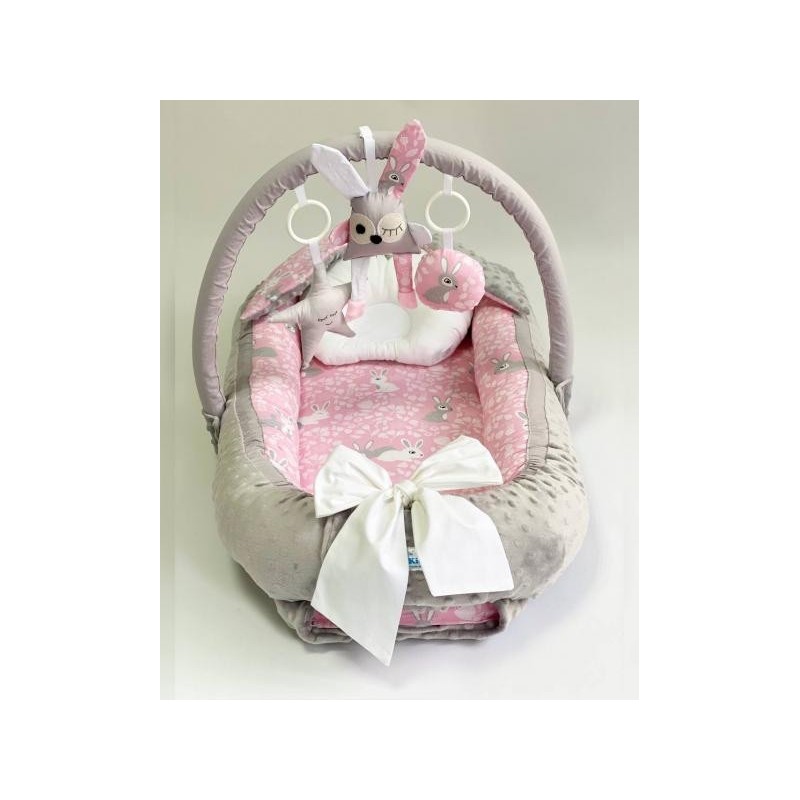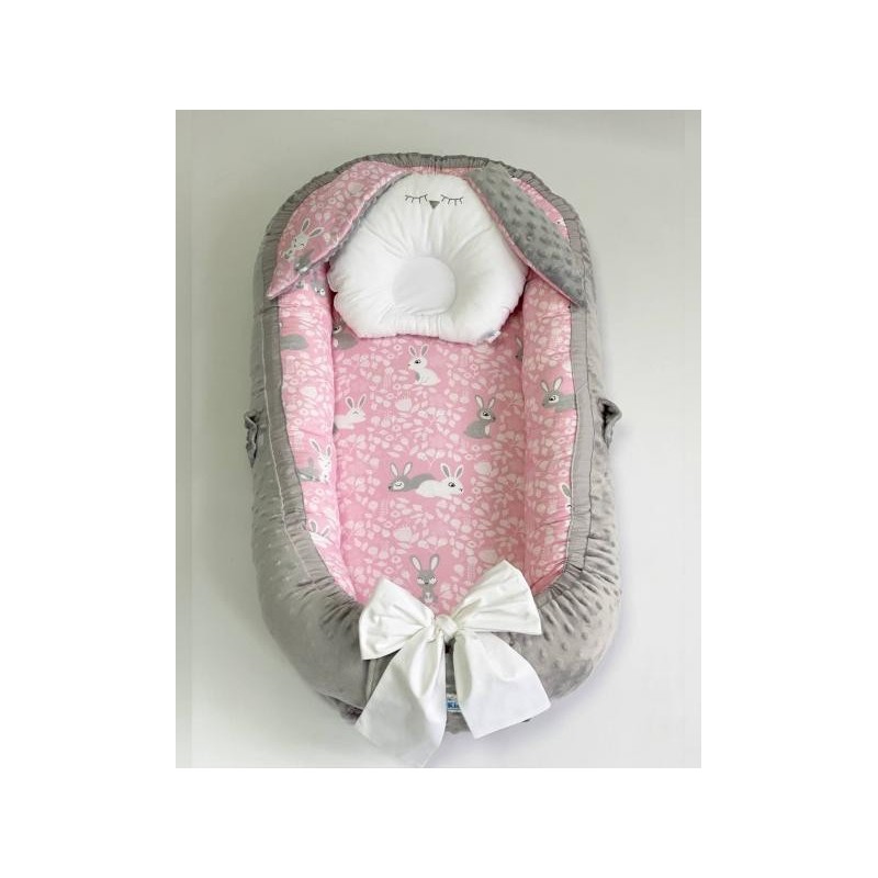 Pentru a ne adapta cerintelor mamicilor folosim doar materiale de calitate. Babynest-ul este umplut cu bumbac 100% natural care indeplineste toate standardele europene de si o tesatura din material moale si pufos Minky Dot.