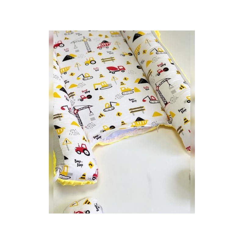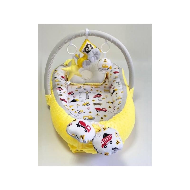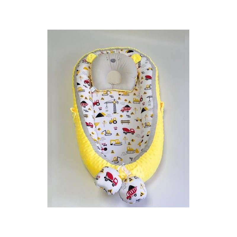 Pentru a ne adapta cerintelor mamicilor folosim doar materiale de calitate. Babynest-ul este umplut cu bumbac 100% natural care indeplineste toate standardele europene de si o tesatura din material moale si pufos Minky Dot.