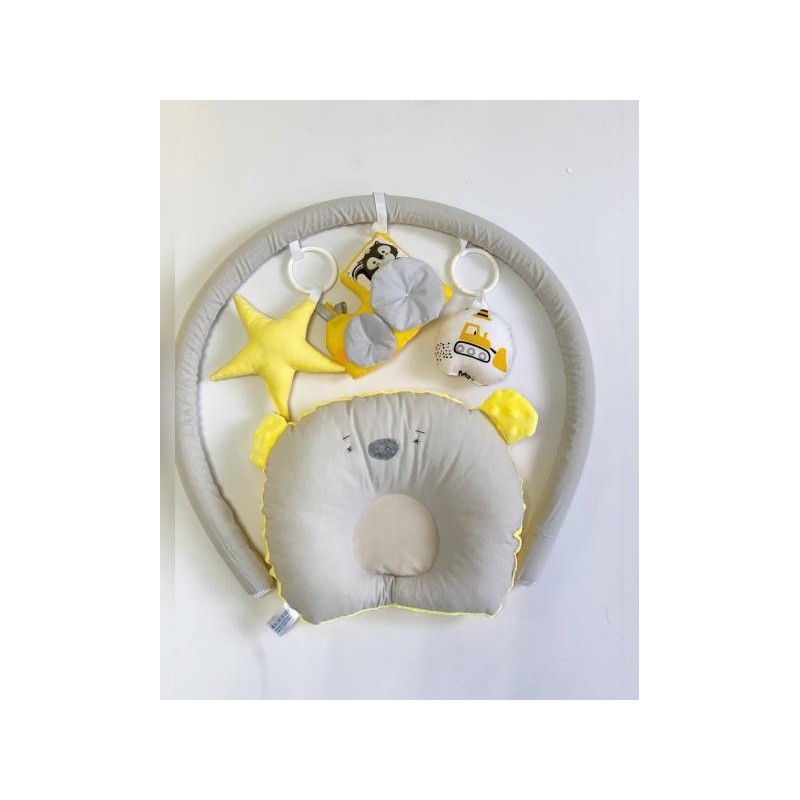 Cuibul include o arcada pe care sunt asezate jucariile astfel copilul va fi foarte interesat sa le prinda si o pernita cu un design unic.
