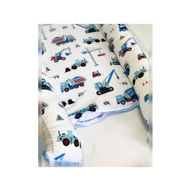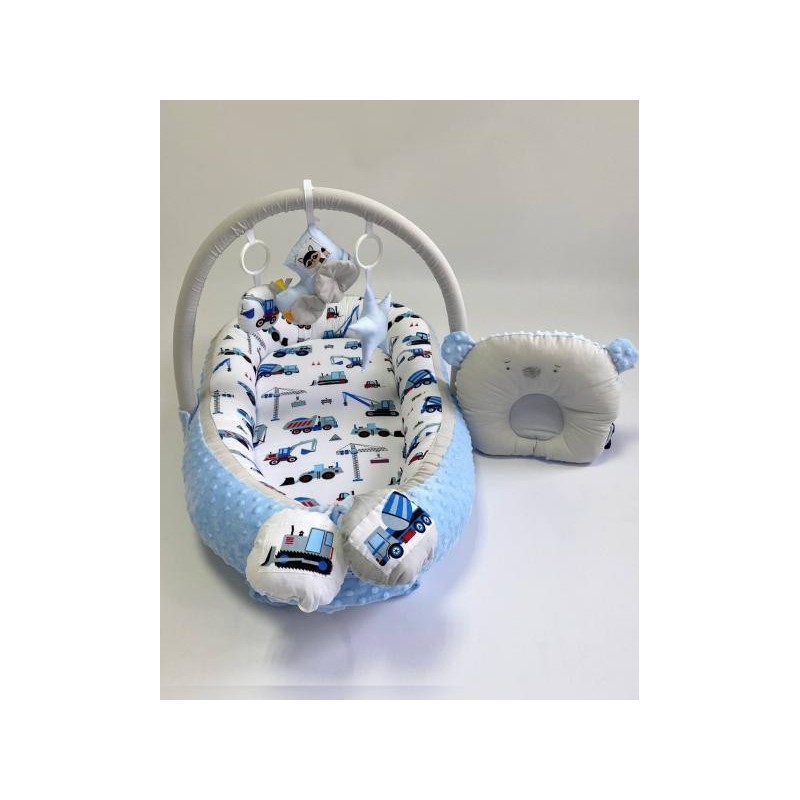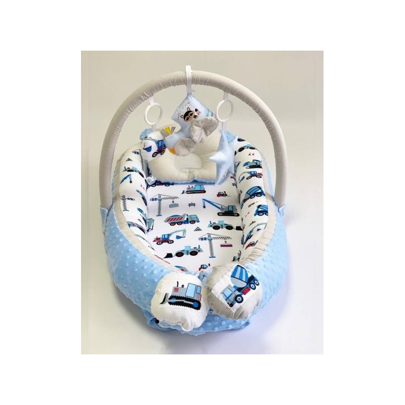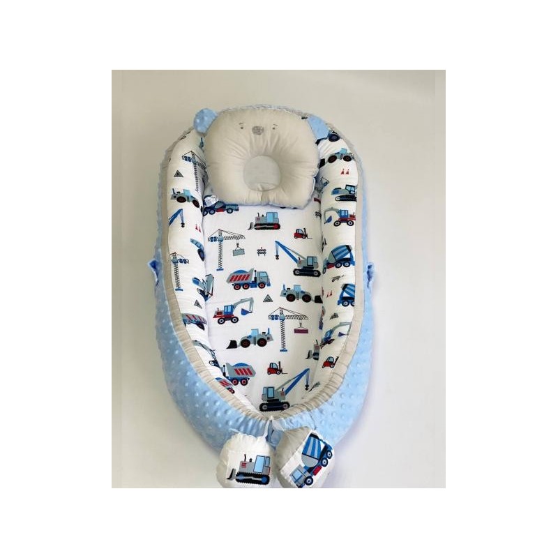 Pentru a ne adapta cerintelor mamicilor folosim doar materiale de calitate. Babynest-ul este umplut cu bumbac 100% natural care indeplineste toate standardele europene de si o tesatura din material moale si pufos Minky Dot.