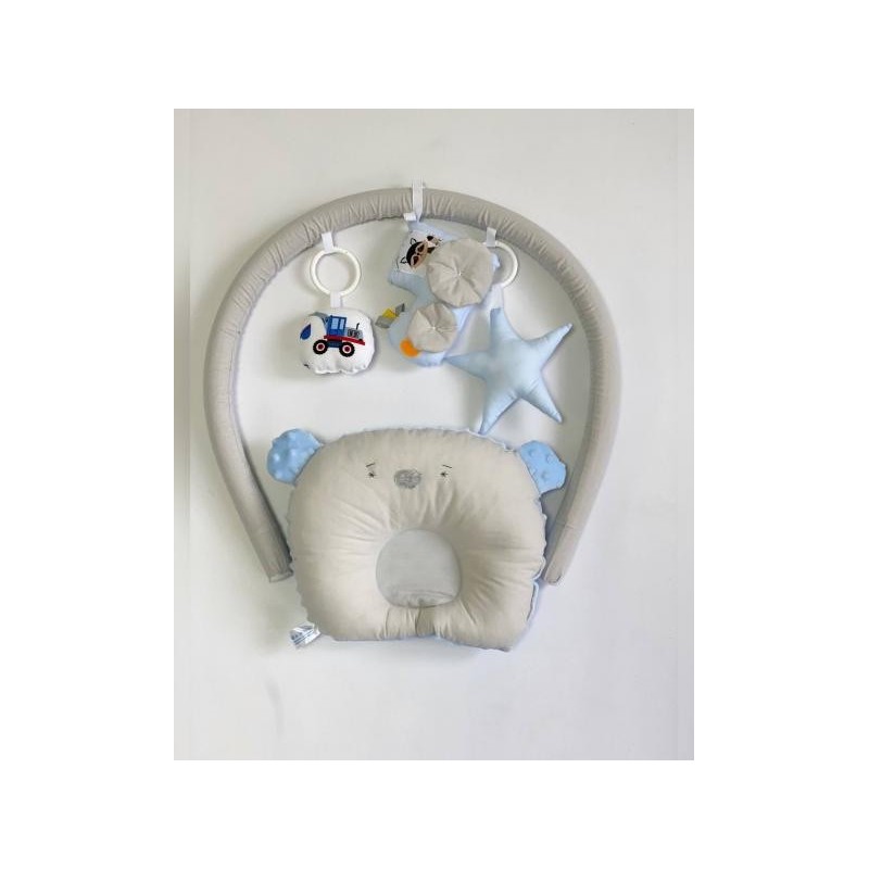 Cuibul include o arcada pe care sunt asezate jucariile astfel copilul va fi foarte interesat sa le prinda si o pernita cu un design unic.