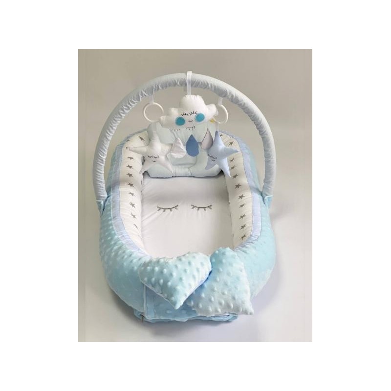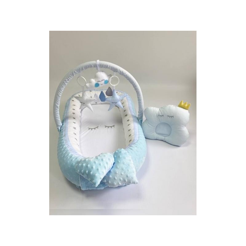 Cuibul include o arcada pe care sunt asezate jucariile astfel copilul va fi foarte interesat sa le prinda si o pernita cu un design unic.