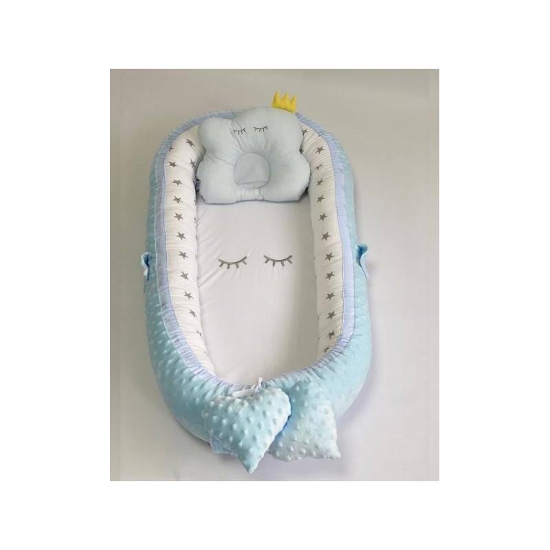 Pentru a ne adapta cerintelor mamicilor folosim doar materiale de calitate. Babynest-ul este umplut cu bumbac 100% natural care indeplineste toate standardele europene de si o tesatura din material moale si pufos Minky Dot.