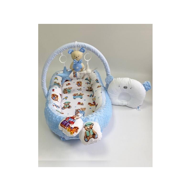 Cuibul include o arcada pe care sunt asezate jucariile astfel copilul va fi foarte interesat sa le prinda si o pernita cu un design unic.