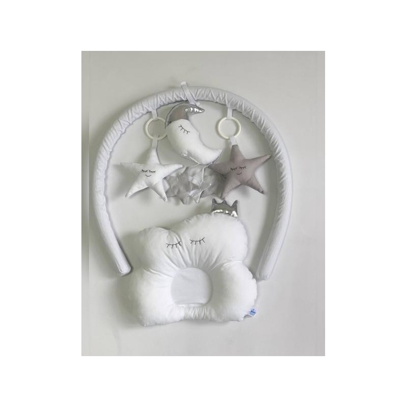 Cuibul include o arcada pe care sunt asezate jucariile astfel copilul va fi foarte interesat sa le prinda si o pernita cu un design unic.