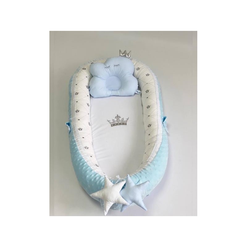 Pentru a ne adapta cerintelor mamicilor folosim doar materiale de calitate. Babynest-ul este umplut cu bumbac 100% natural care indeplineste toate standardele europene de si o tesatura din material moale si pufos Minky Dot.