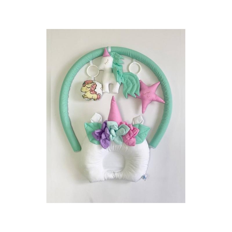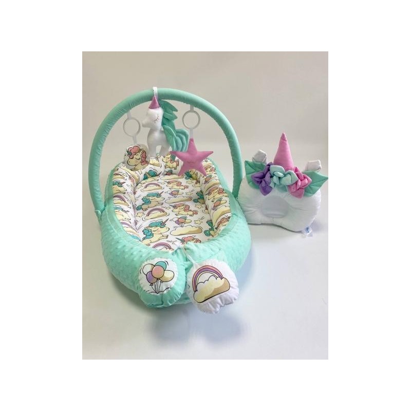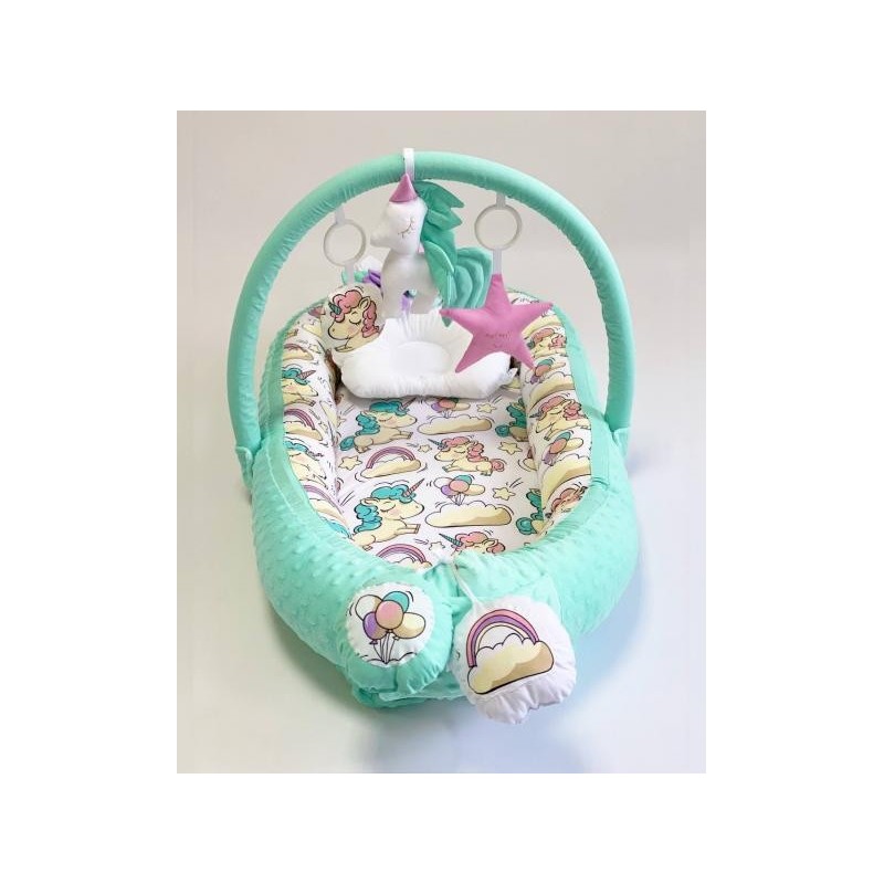 Cuibul include o arcada pe care sunt asezate jucariile astfel copilul va fi foarte interesat sa le prinda si o pernita cu un design unic.