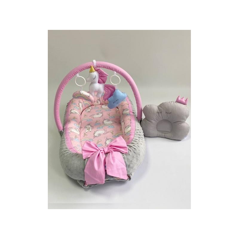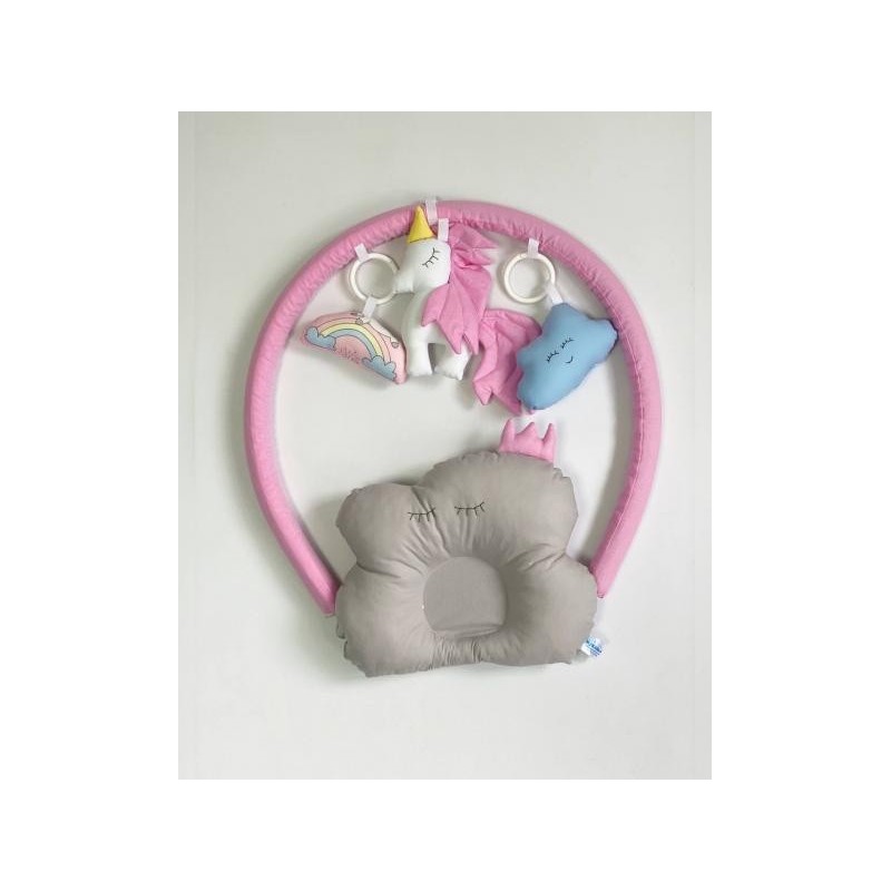 Cuibul include o arcada pe care sunt asezate jucariile astfel copilul va fi foarte interesat sa le prinda si o pernita cu un design unic.