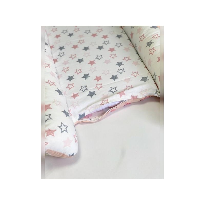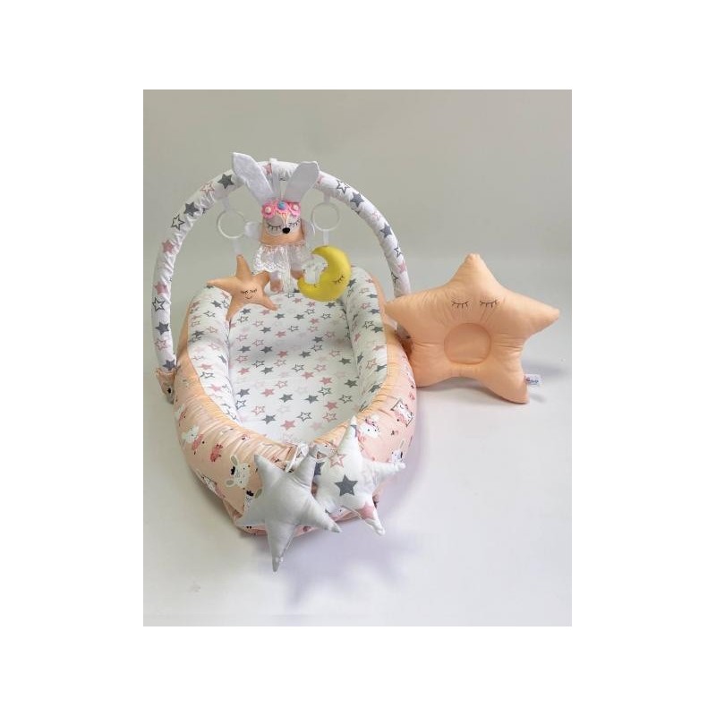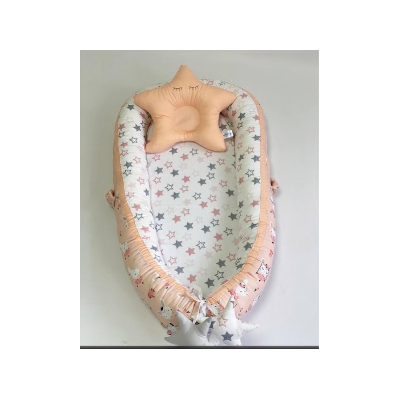 Pentru a ne adapta cerintelor mamicilor folosim doar materiale de calitate. Babynest-ul este umplut cu bumbac 100% natural care indeplineste toate standardele europene de si o tesatura din material moale din bumbac.