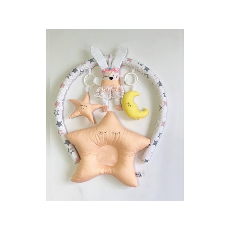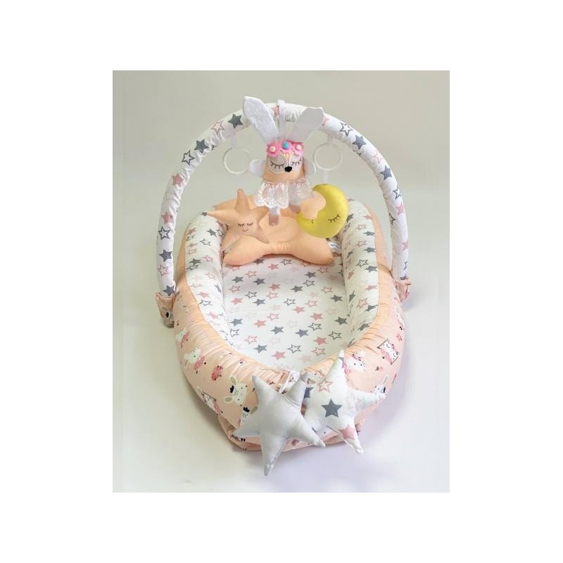 Cuibul include o arcada pe care sunt asezate jucariile astfel copilul va fi foarte interesat sa le prinda si o pernita cu un design unic.