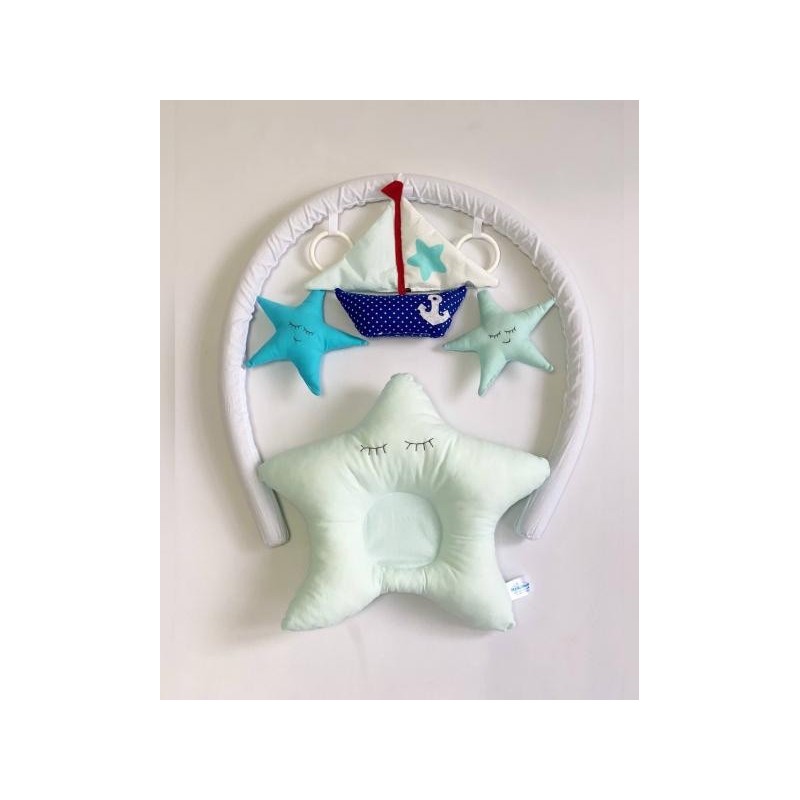 Cuibul include o arcada pe care sunt asezate jucariile astfel copilul va fi foarte interesat sa le prinda si o pernita cu un design unic.