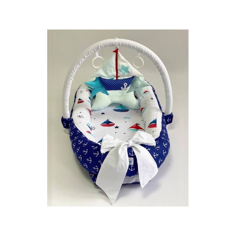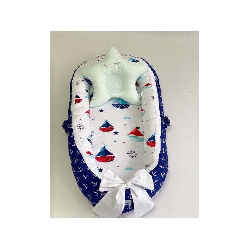 Pentru a ne adapta cerintelor mamicilor folosim doar materiale de calitate. Babynest-ul este umplut cu bumbac 100% natural care indeplineste toate standardele europene de si o tesatura din material moale din bumbac.