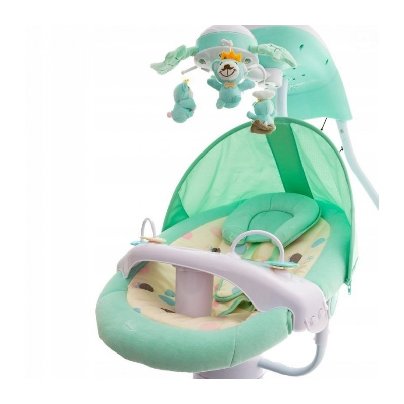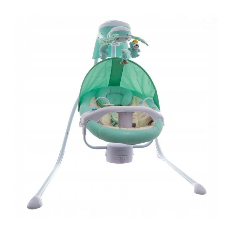 Balansoarul are scaun reglabil (2 nivele) in functie de varsta copilului. Functia de balansare este situata pe panoul superior. Balansoarul poate functiona cu baterii sau cu o sursa de alimentare.