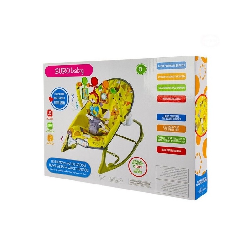 Centurile de siguranta nu pot sa lipseasca, oferind siguranta copilului dvs. Spatarul are 2 pozitii de inclinare. Este dotat cu functii de vibrare.