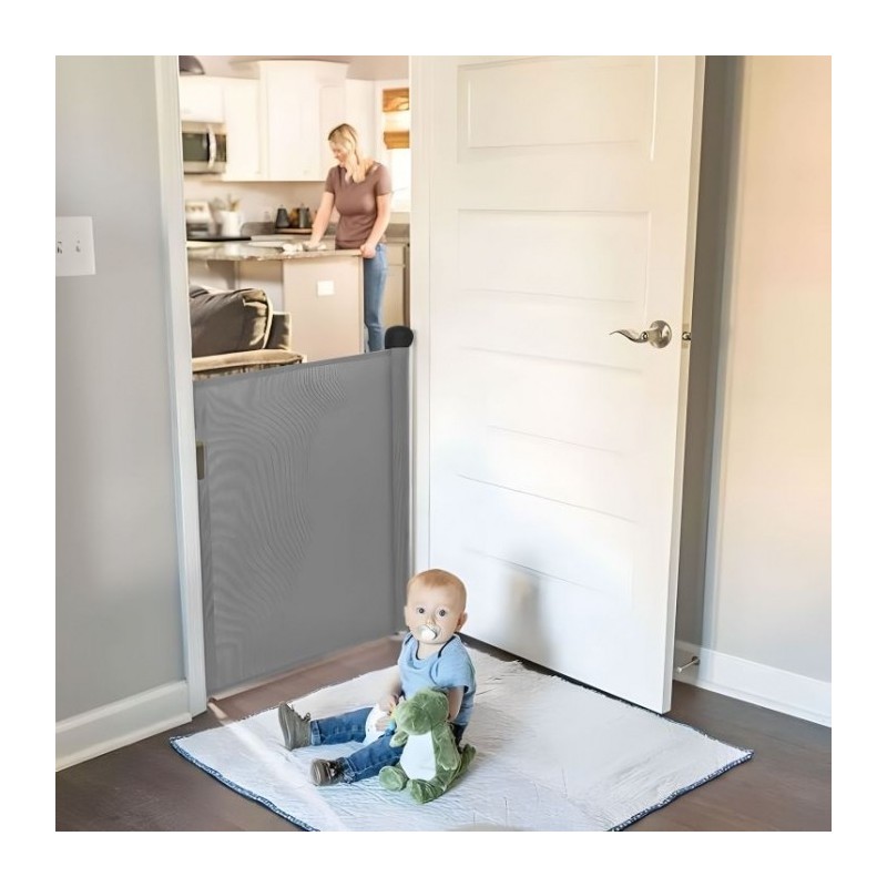 Poarta de siguranta ECOTOYS, sub forma unei bariere retractabile practice, este perfecta pentru protejarea copiilor si a animalelor de companie. Cu o latime reglabila de pana la 150 cm si o deschidere convenabila cu o singura mana, asigura confortul utilizatorului.