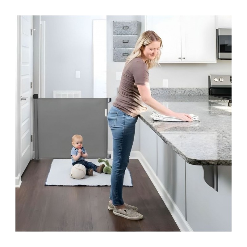 Poarta de siguranta ECOTOYS, sub forma unei bariere retractabile practice, este perfecta pentru protejarea copiilor si a animalelor de companie. Cu o latime reglabila de pana la 180 cm si o deschidere convenabila cu o singura mana, asigura confortul utilizatorului.