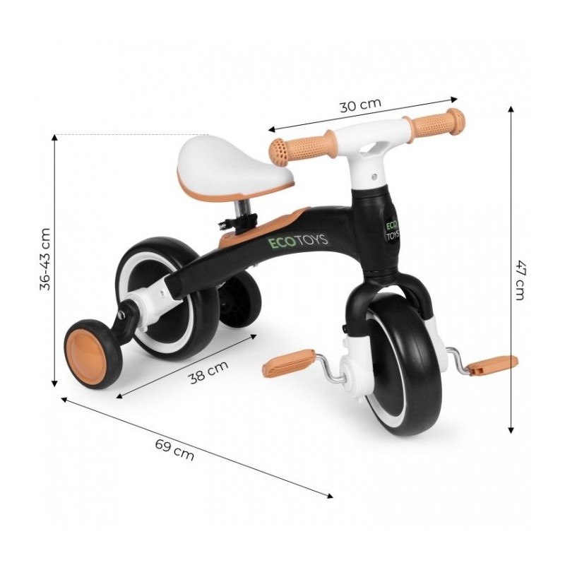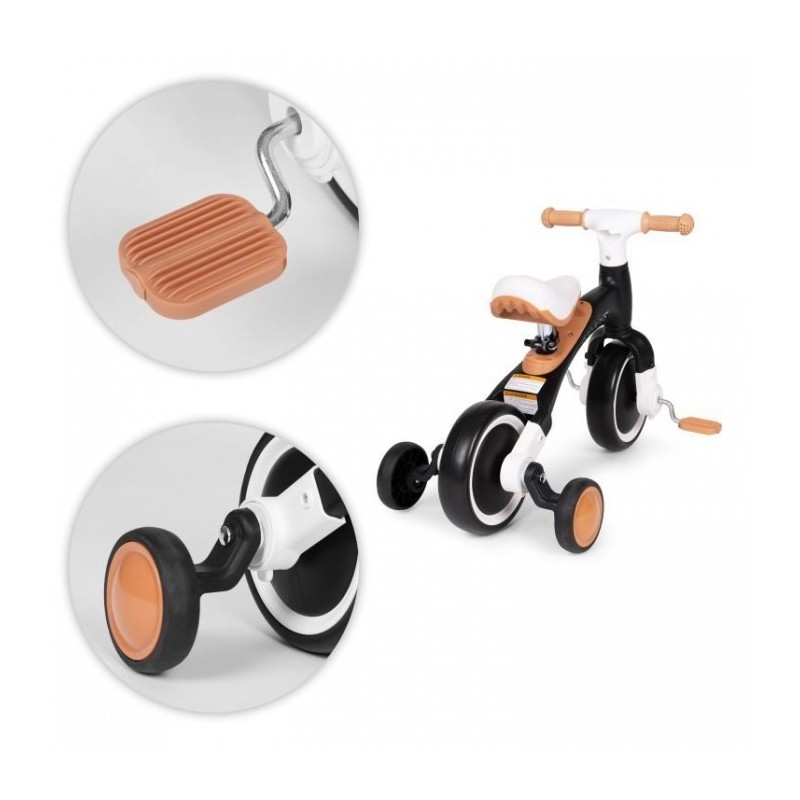 Mersul pe acest tip de bicicleta invata copilul coordonare si cum sa-si mentina echilibrul. Ii permite invatarea diverselor abilitati, precum pornirea, ajustarea directiei, descalecarea, oprirea. Va avea parte de ore intregi de distractie, invatand in acelasi timp. Rotile ajutatoare permit chiar si unui copil foarte mic sa invete cum sa foloseasca bicicleta.