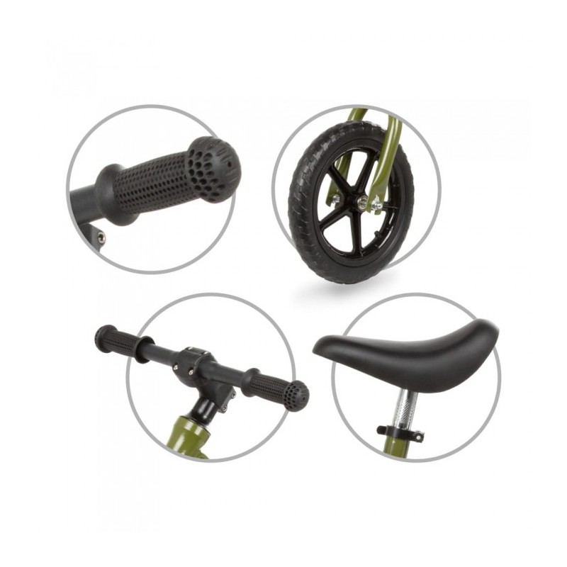 Sa: scaun ergonomic cu umplutura moale, confortabila. Reglarea rapida a inaltimii (31-42 cm) face ca bicicleta sa creasca odata cu copilul.