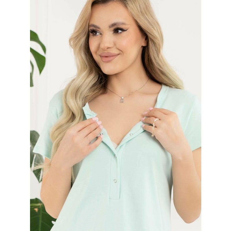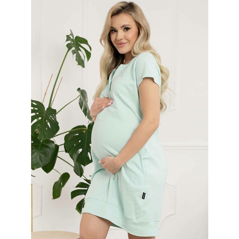 • Camasa de alaptare de maternitate intr-o nuanta minunata de menta, cu pliuri mici in jurul sanului si o tiv frumos in partea de jos.