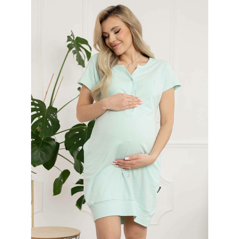 Camasa de alaptat Din bumbac Cu capse pe mijloc si buzunare Masura S Sunny Mint
