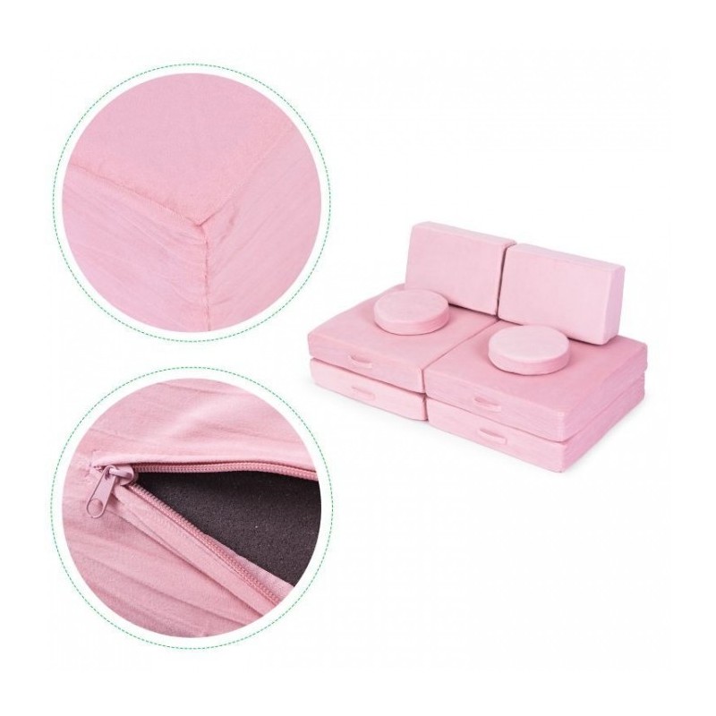 Canapeaua modulara pentru copii de la Ecotoys este o solutie confortabila si versatila pentru o camera de copii. Este formata din 8 perne moi care pot fi configurate liber, creand diverse aranjamente pentru odihna sau joaca. Datorita posibilitatii de pliere, canapeaua este usor de depozitat si nu ocupa mult spatiu.