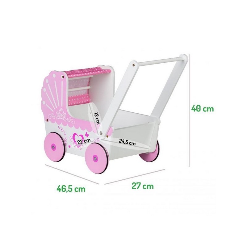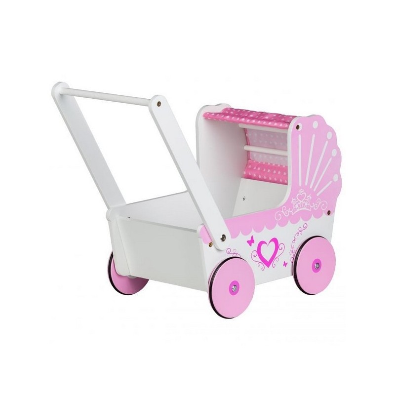 Carucior de papusi din lemn TT003 Ecotoys - Roz