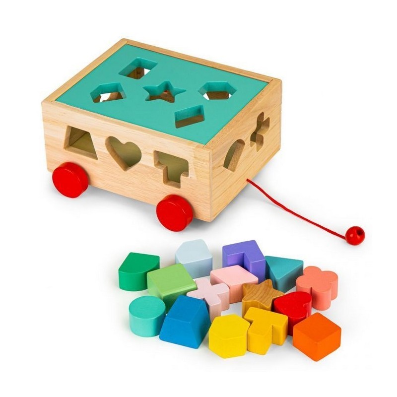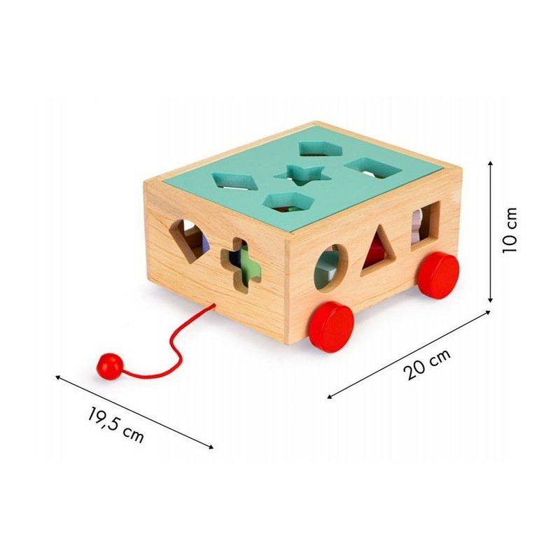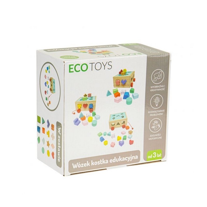 Caruciorul educational Ecotoys are gauri speciale pe pereti, distractia este sa asortezi forma potrivita cu gaura. Copilul va avea ocazia sa cunoasca diferite forme si sa invete sa recunoasca culorile de baza. Jucaria poate fi folosita ca loc de depozitare a altor obiecte si, in plus, copilul isi dezvolta obiceiul de a curata dupa terminarea jocului.