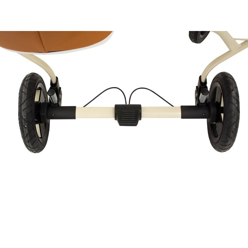 - Frana este prevazuta pe tija din rotile din spate ale caruciorului si poate fi actionata prin simpla apasare cu piciorul