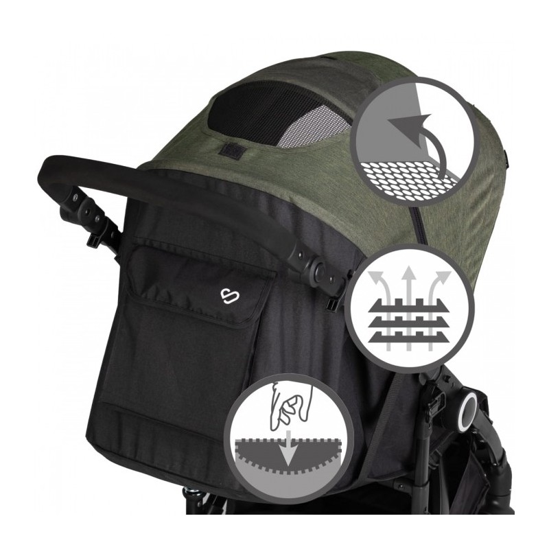 Vara - soare arzator si calatorii mai lungi - o copertina pliabila cu o clapa detasabila va proteja copilul de soarele excesiv, o fereastra care se deschide in copertina va permite o ventilatie adecvata, o structura spatioasa va permite un pui de somn confortabil si regenerant. Suportul de bauturi reci va permite parintelui sa se improspateze.