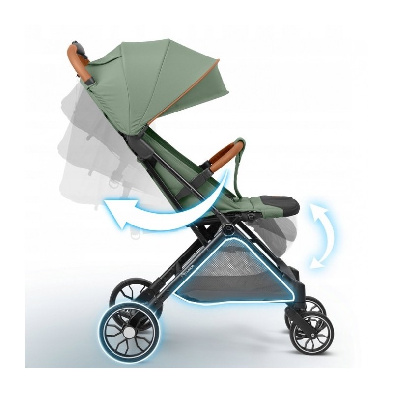 • Spatarul reglabil va permite sa schimbati unghiul acestuia pana la pozitia “culcat”. Datorita acestui fapt, caruciorul poate fi folosit nu numai pentru a sta, ci permite copilului sa traga un pui de somn confortabil la aer curat;