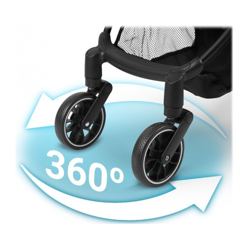 • Roti la 360° cu suspensie si roti mari spate pentru toate tipurile de teren;