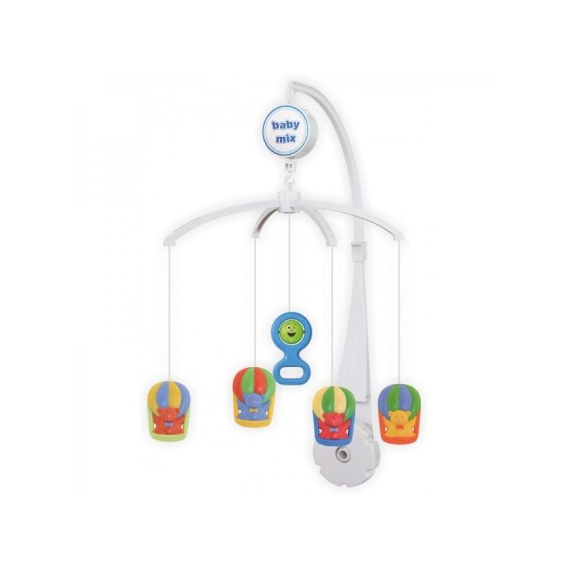 Caruselul muzical Baby Mix este confectionat din materiale de calitate si este usor de montat si intretinut. Este prevazut cu jucarii viu colorate din plastic care vor permite copilului sa descopere noi culori si forme.