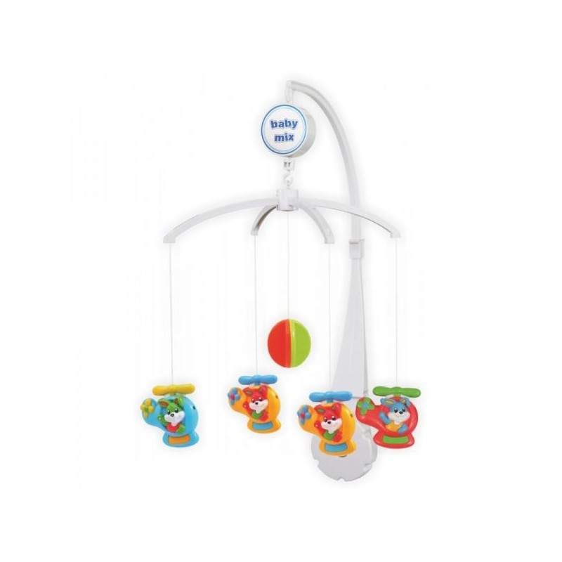 Caruselul muzical Baby Mix este confectionat din materiale de calitate si este usor de montat si intretinut. Este prevazut cu jucarii viu colorate din plastic care vor permite copilului sa descopere noi culori si forme.