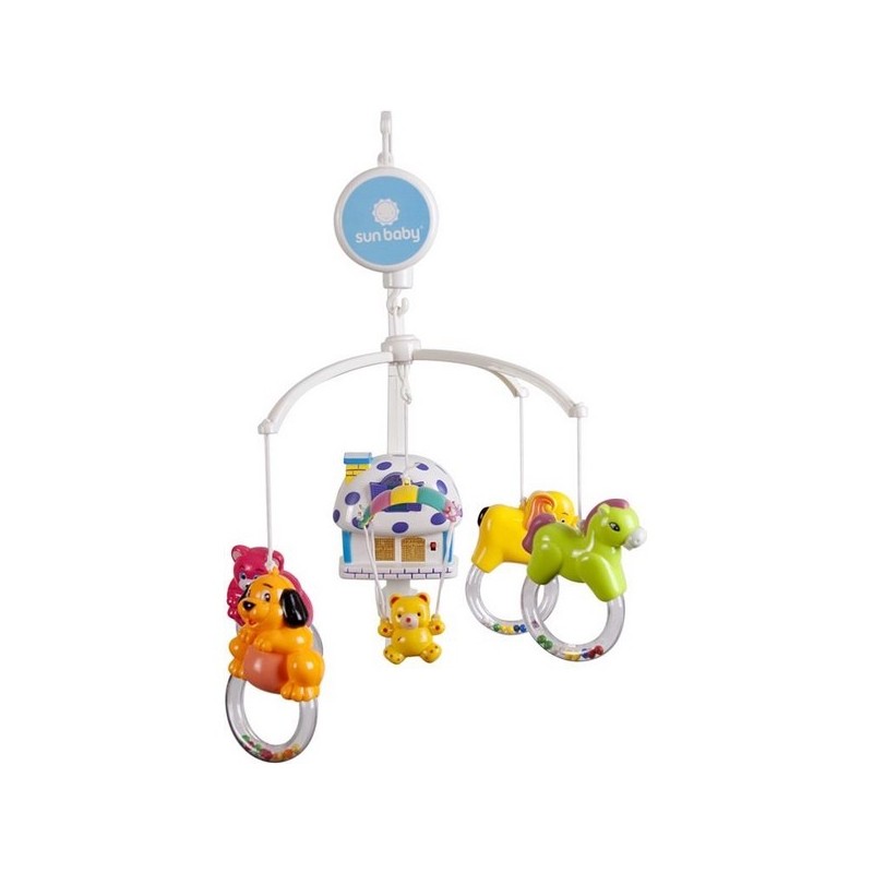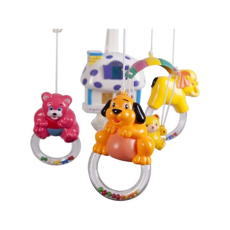Caruselul are incluse 5 jucarii care reprezinta figurine animale, frumos colorate.