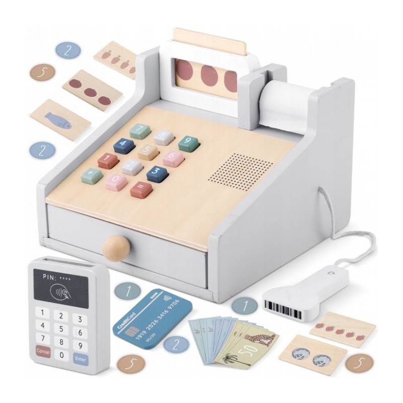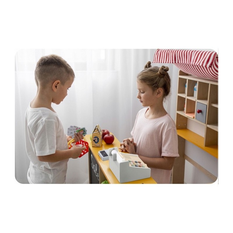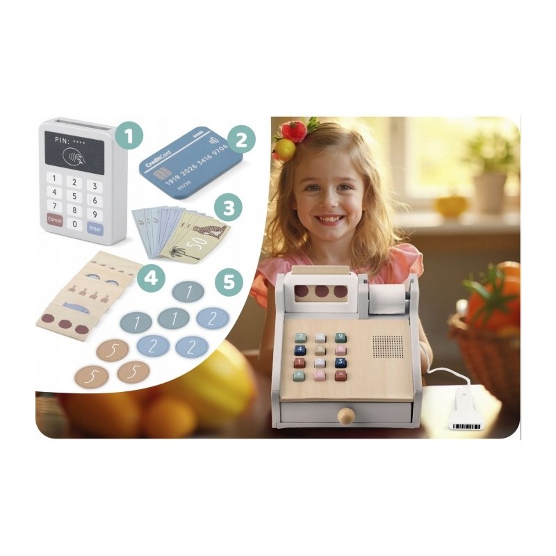 - o casa de marcat cu sertar care se deschide si care va pastra bacnotele si monedele incluse in set;