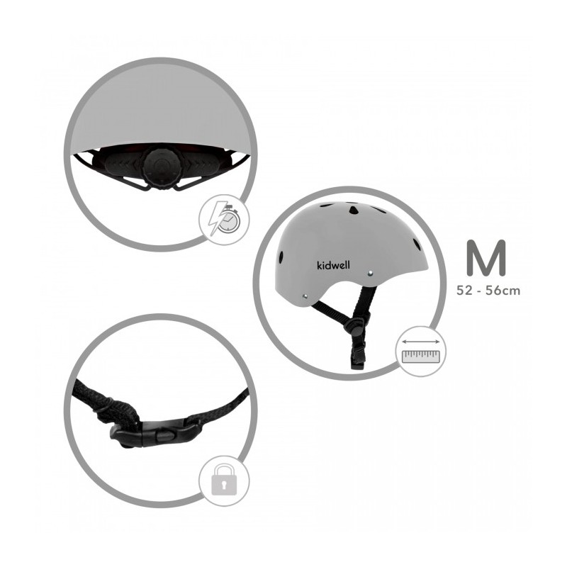 Sistemul convenabil de reglare a circumferintei cu un buton va va permite sa ajustati mai bine si mai rapid casca la capul copilului. O curea reglabila cu catarama durabila va asigura o utilizare solida si stabila a castii. Curelele dintr-un material moale la atingere, nu irita pielea copilasului. Casca dimensiune M, 52 - 56 cm.