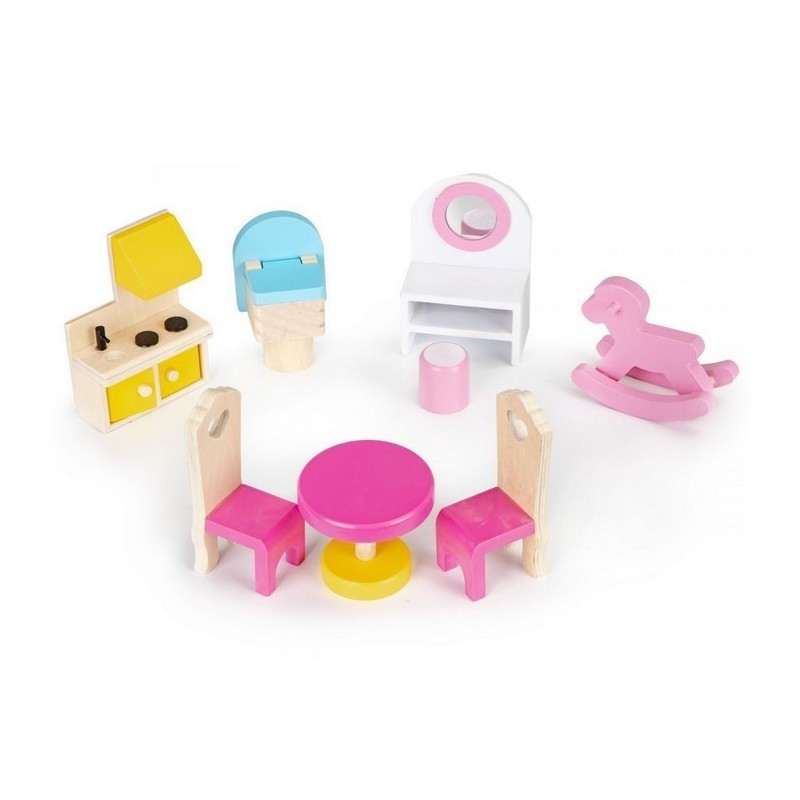 Setul include, de asemenea, 8 piese de mobilier din lemn care poate fi indepartate si mutate in mod liber, fara restrictii!