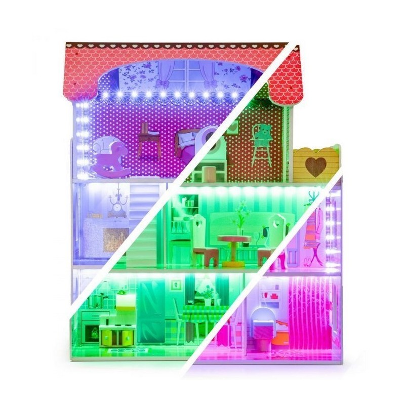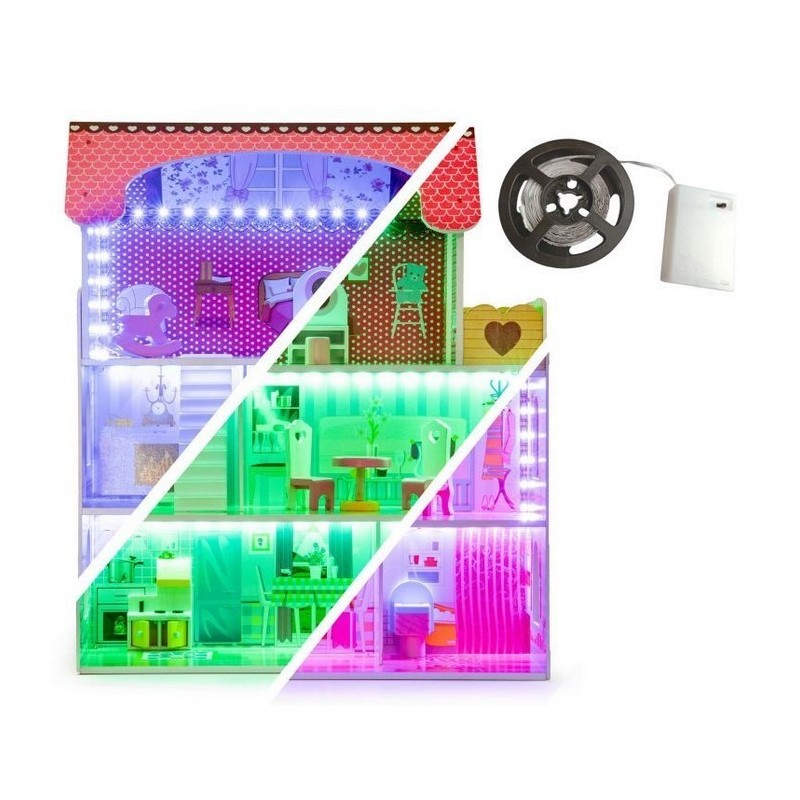 Setul include o banda cu diode LED si o telecomanda pentru culoarea luminii. Elementele individuale ale casei au gauri speciale pentru trecerea benzii LED intre podele. Datorita acestui fapt, fiecare interior al casei va fi iluminat, ceea ce va face distractia si mai captivanta.