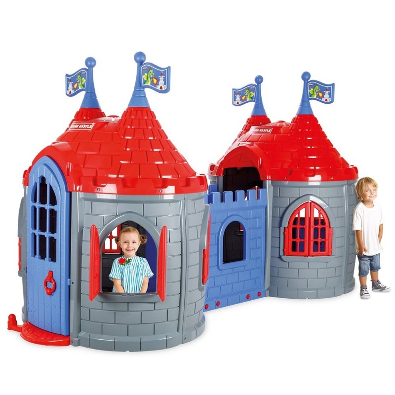 • Casuta castel dubla pentru copii are un design aparte si datorita culorilor vii, va infrumuseta fiecare gradina sau curte