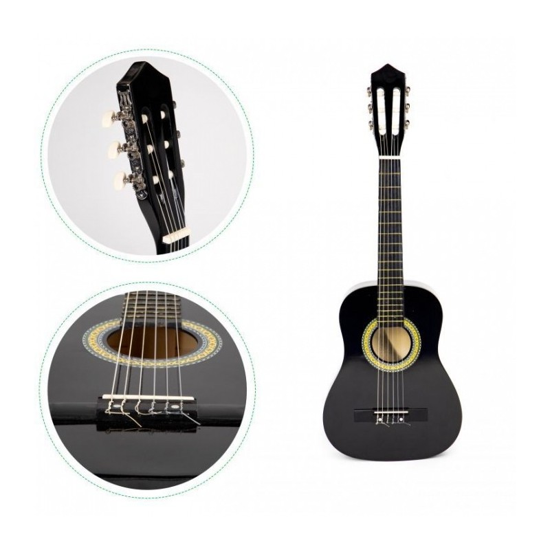 Copiii adora muzica de la o varsta frageda, sunt interesati de sunete, canta, danseaza si incearca sa cante la instrumente simple. Daca copilul tau priveste muzicienii, cantand in acelasi timp cu entuziasm si admiratie, se preface ca a inventat tobe sau chitara, inseamna ca adevaratul talent muzical se poate maturiza acasa. Merita sa sustii astfel de interese si sa le dezvolti de la inceput alegand jucariile potrivite. O chitara Ecotoys se poate dovedi primul pas catre o mare pasiune. Chitara a fost conceputa pentru a avea toate caracteristicile unei chitare de dimensiuni mari.