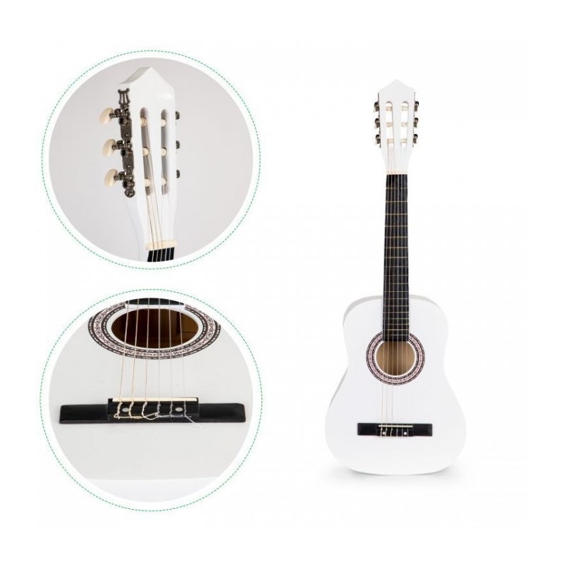 Copiii adora muzica de la o varsta frageda, sunt interesati de sunete, canta, danseaza si incearca sa cante la instrumente simple. Daca copilul tau priveste muzicienii, cantand in acelasi timp cu entuziasm si admiratie, se preface ca a inventat tobe sau chitara, inseamna ca adevaratul talent muzical se poate maturiza acasa. Merita sa sustii astfel de interese si sa le dezvolti de la inceput alegand jucariile potrivite. O chitara Ecotoys se poate dovedi primul pas catre o mare pasiune. Chitara a fost conceputa pentru a avea toate caracteristicile unei chitare de dimensiuni mari.